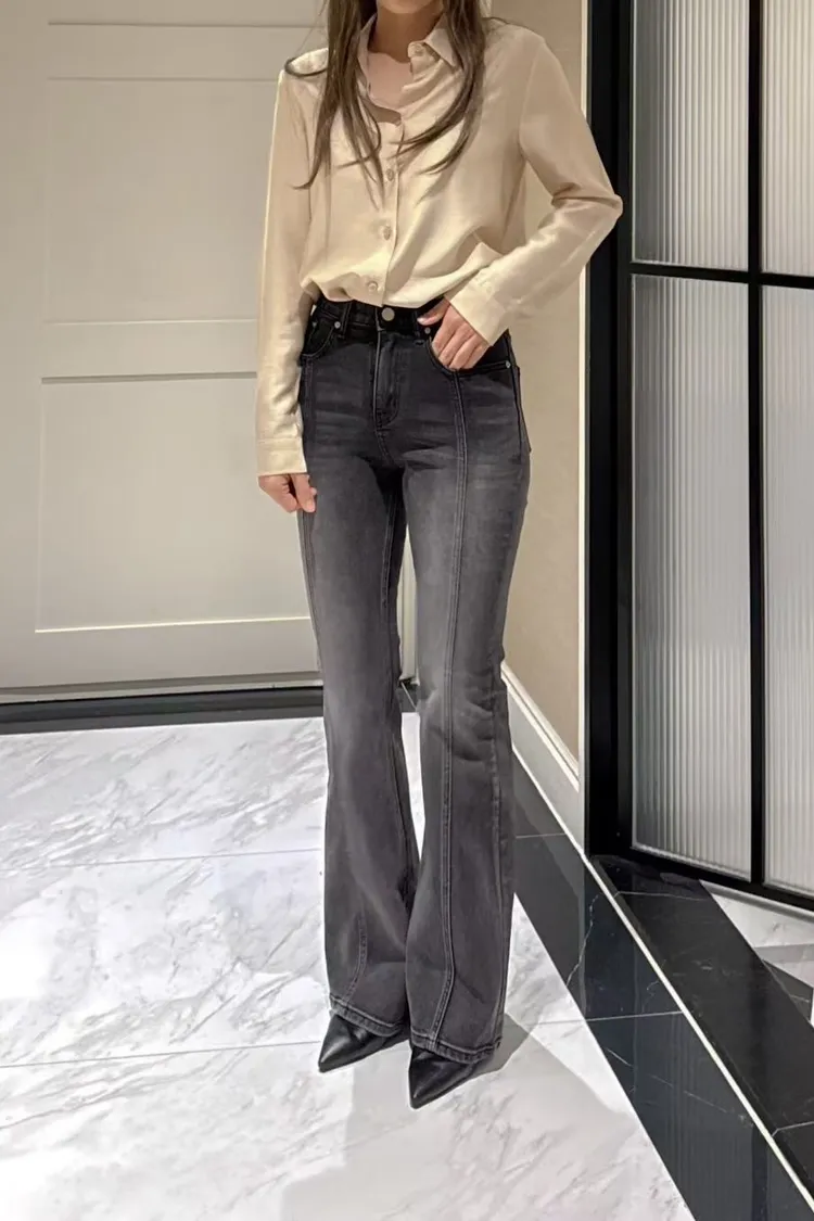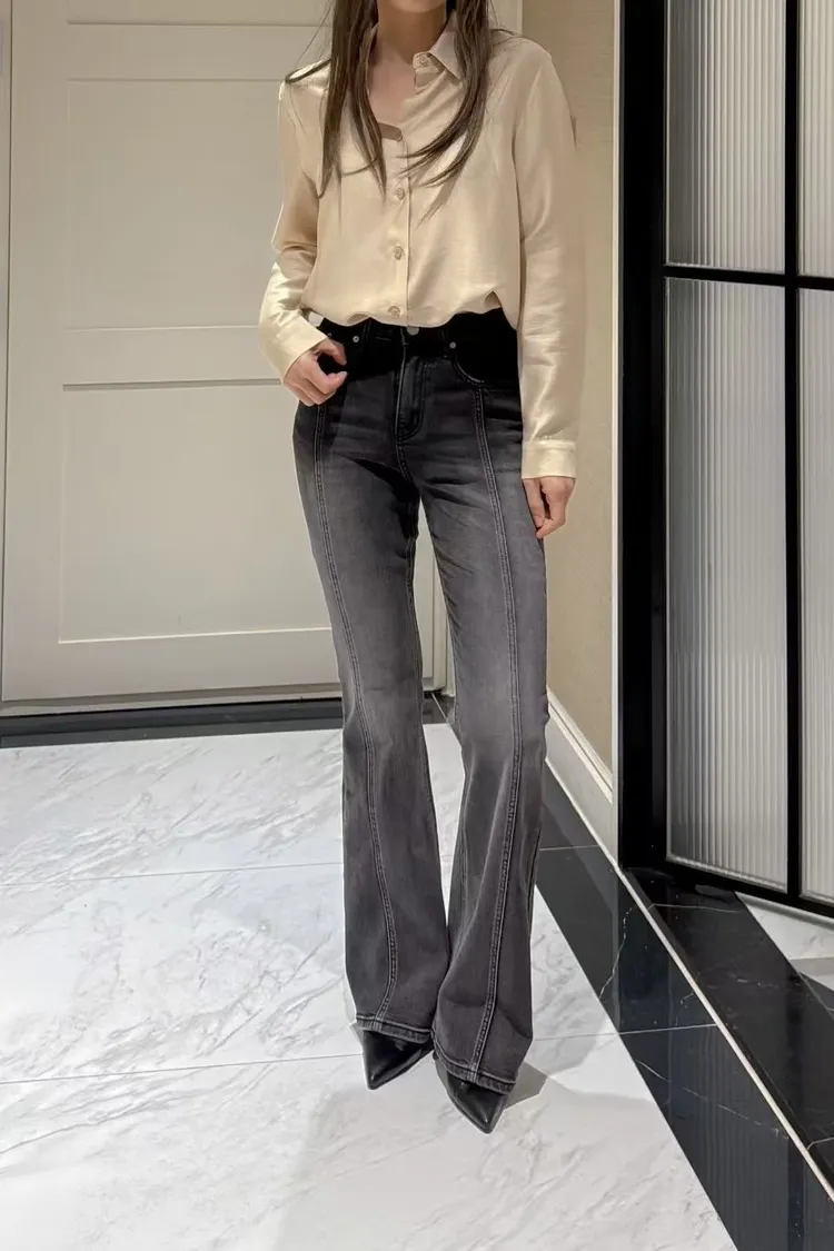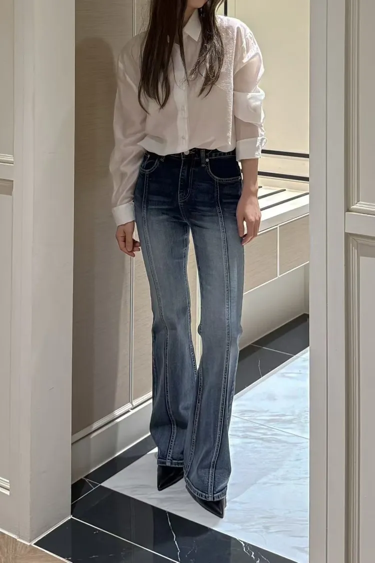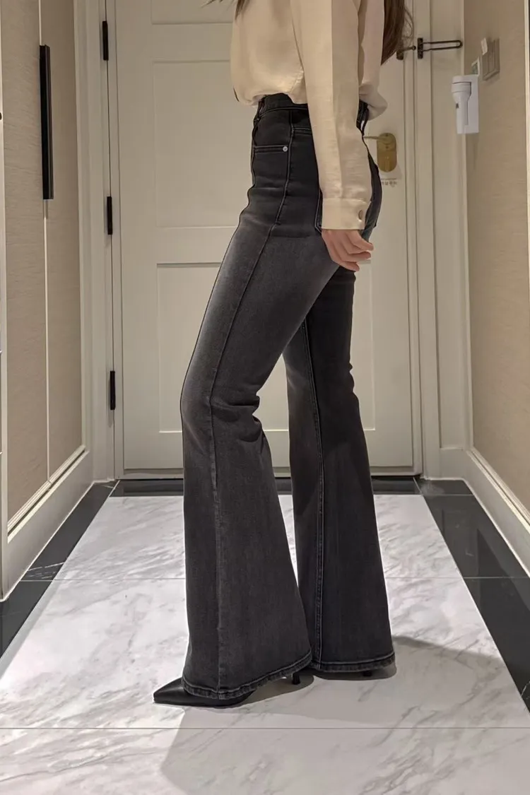【黑L現貨】高彈力漸層喇叭褲